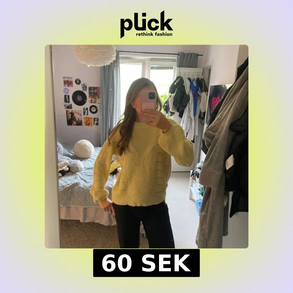 Superfin ljusgul stickad tröja från ICHI i storlek S. Tröjan har ett loose fit med ballongärmar och snygga hålmönster längs ärmarna och sidorna. Rund halsringning och ribbade muddar vid ärmslut och nederkant. Perfekt för dig som gillar mjuka pasteller och chill vibe.