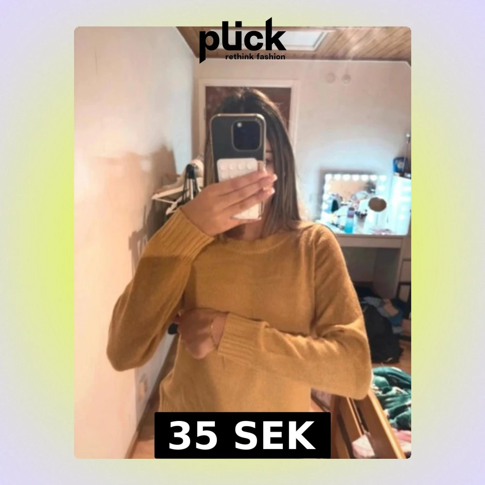 Säljer en snygg stickad tröja i en varm mustardgul färg. Super bra skick, som ny!