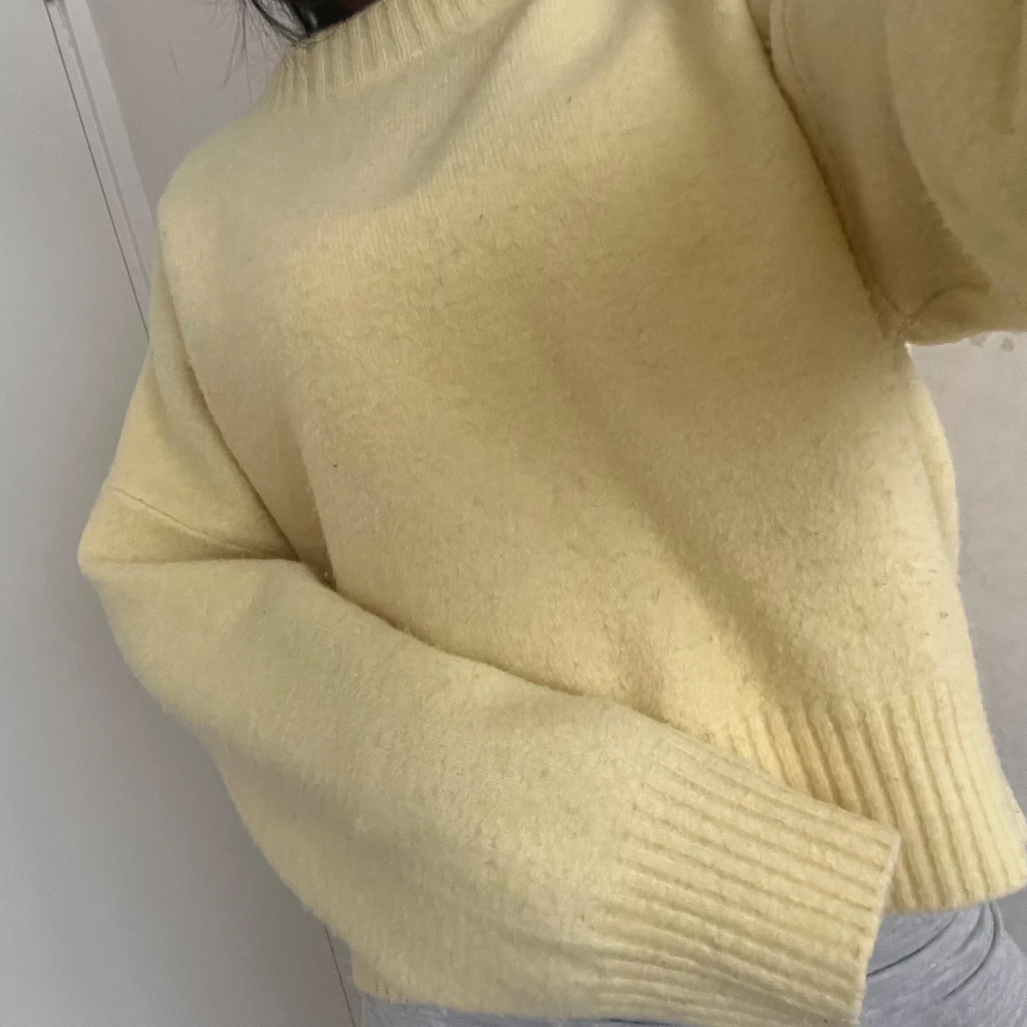 Säljer denna gula stickade tröjan från zara. Den är i jätteskönt och tjockt material men använder intr den alls längre. Tröjan är lite nopprig men annars i gott skick.