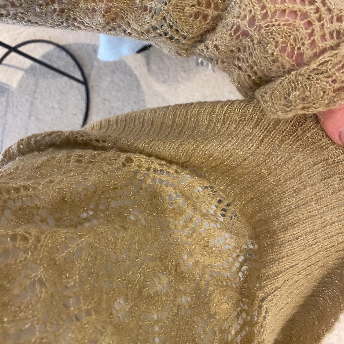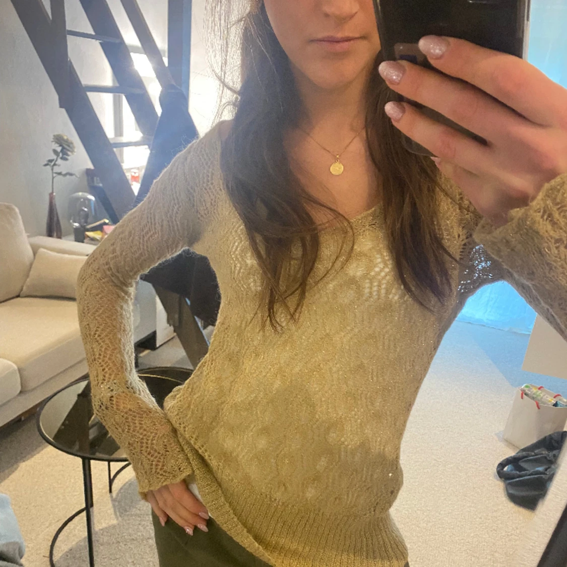 Säljer denna fina och unika stickade tröjan💛💛tunnt fint stickad tröja i guld med tunna glitter trådar i🤩 Storlek XS- S