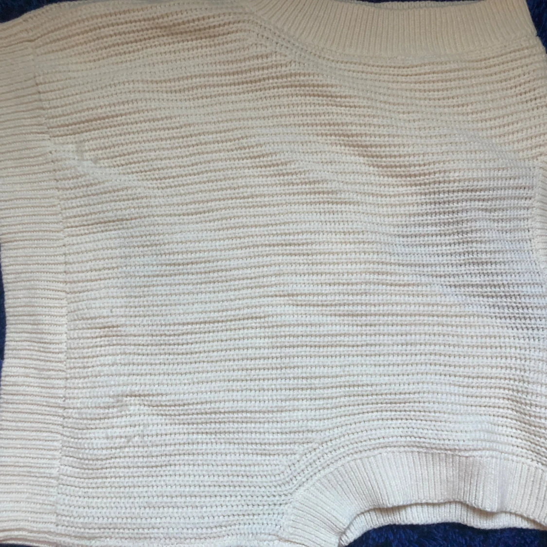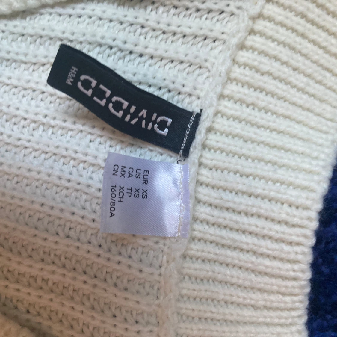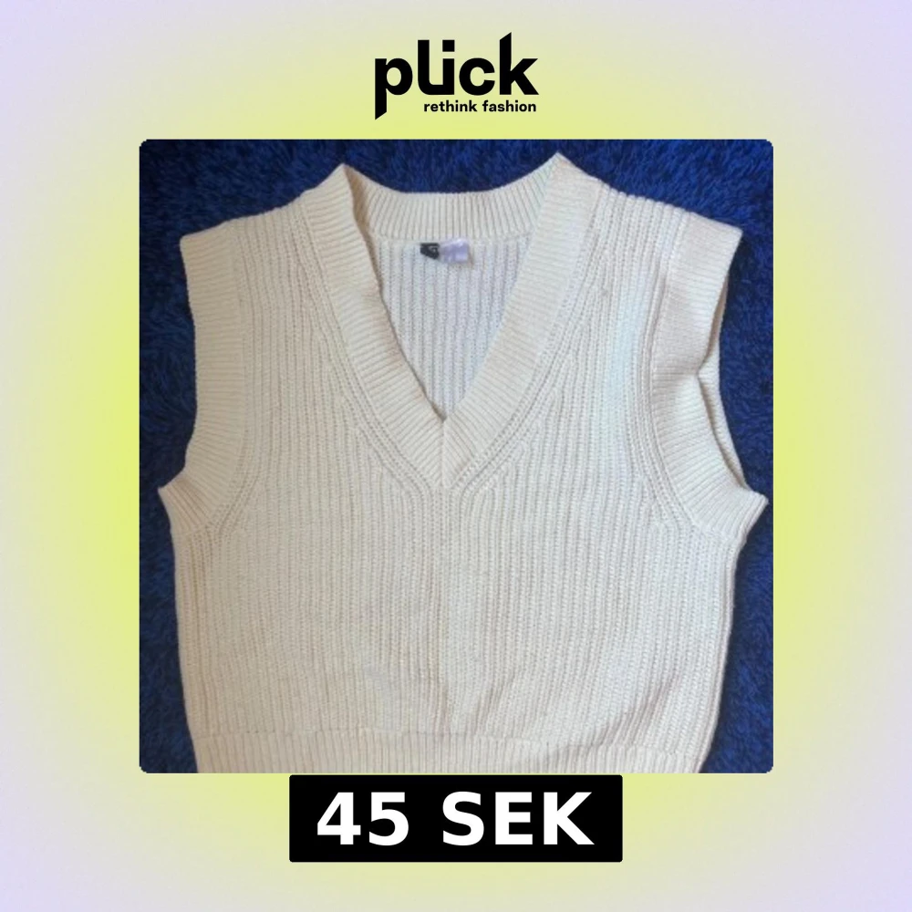 Säljer en beige stickad väst från Divided H&M i storlek XS. Västen har v-ringning och bred ribbad kant vid hals och ärmhål.