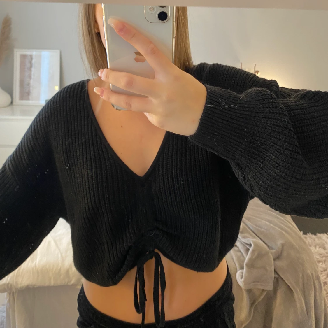 stickadtröja från hm med snörning i mitten så man själv kan bestämma hur man vill ha den, aldrig använd men funkar till så många olika tillfällen