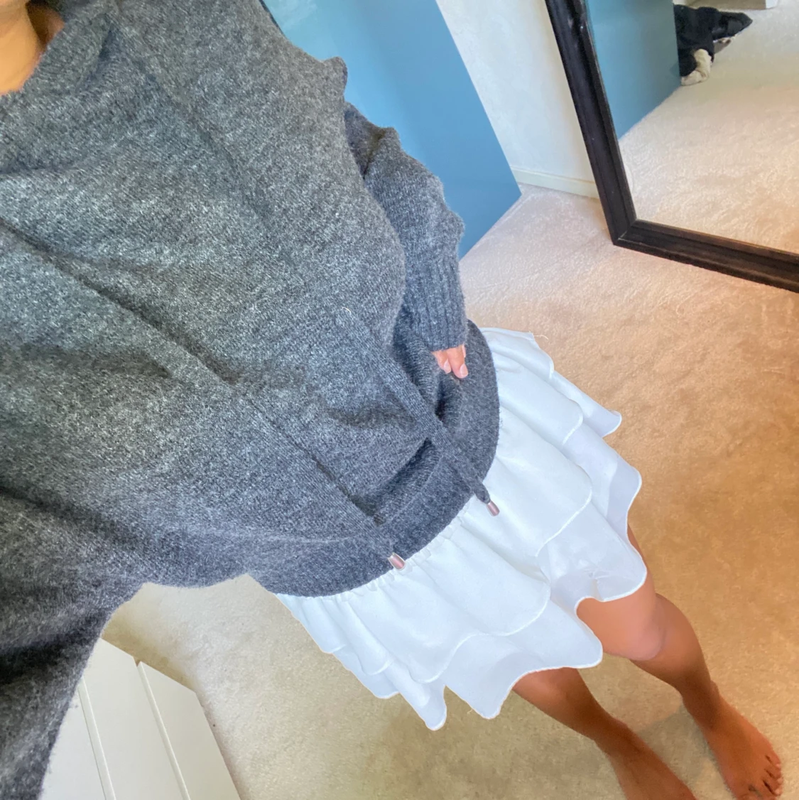 Jättefin stickad hoddie från HM i stoleken S!! Knappt använd och i en super färg, det är en mörkgrå färg om det inte syns på bilderna. Frakt tillkommer!