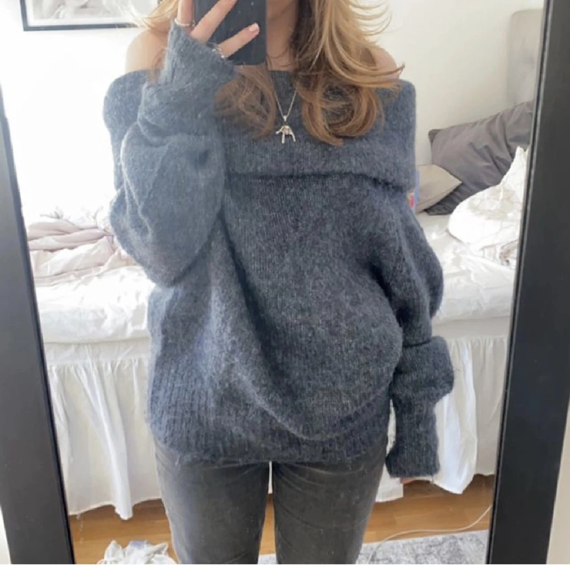 Stickad offshoulder tröja från Hm, helt oanvänd!!🫶🏽🫶🏽