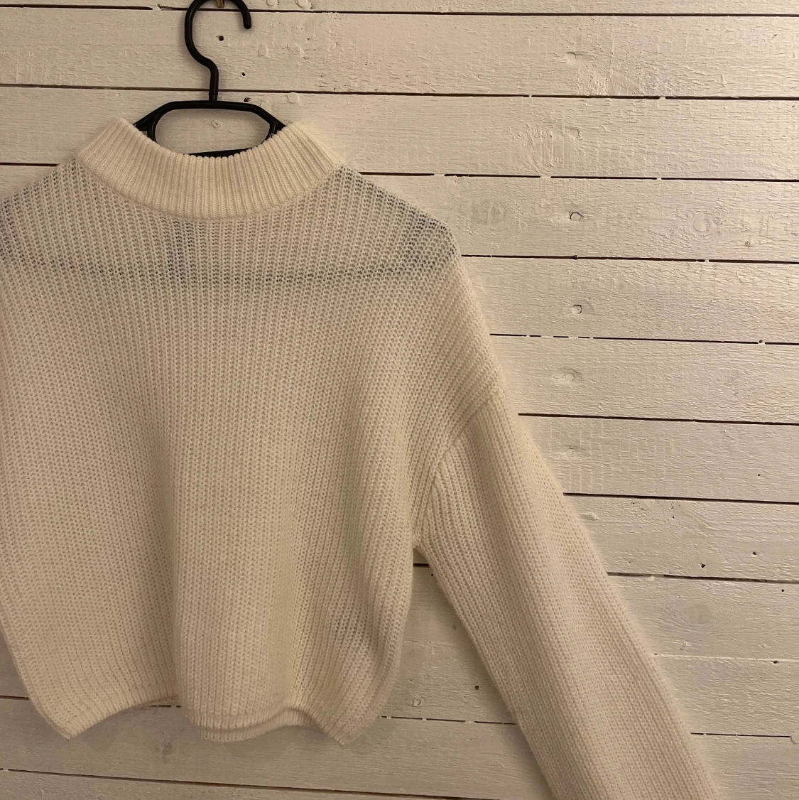 Stickad vit tröja från hm med liten polokrage, storlek xs