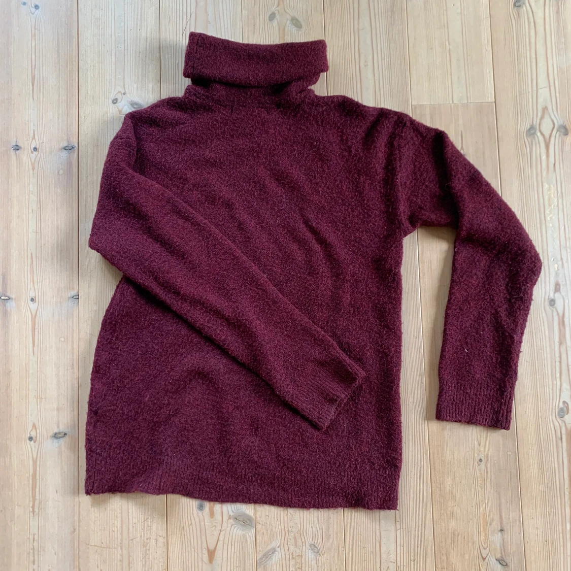 Mysig stickad Vinröd tröja med polokrage Stl M