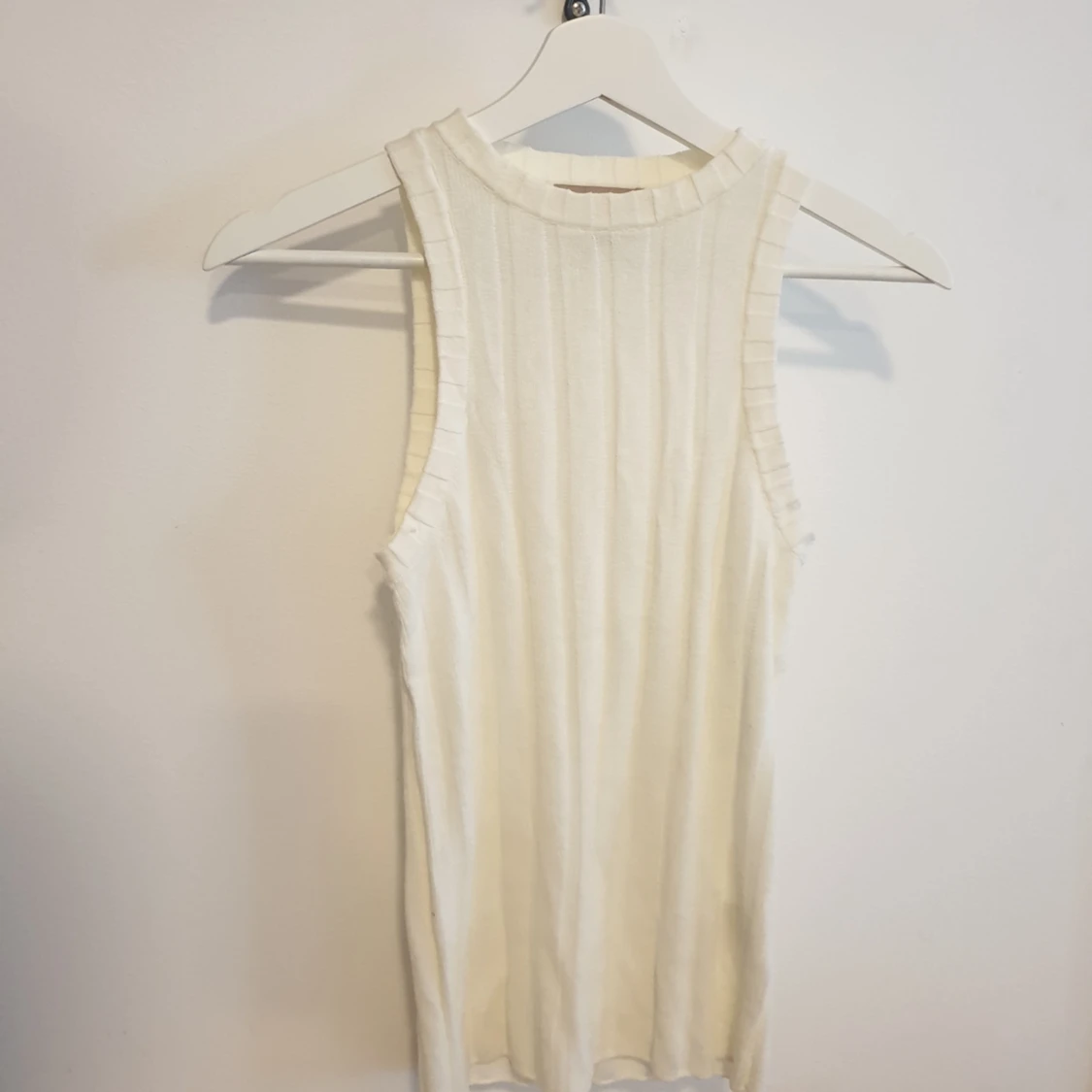 Stickad snygg topp från H&M senaste kollektionen. Helt oanvänd, skönt material i vanilj-vitt💛