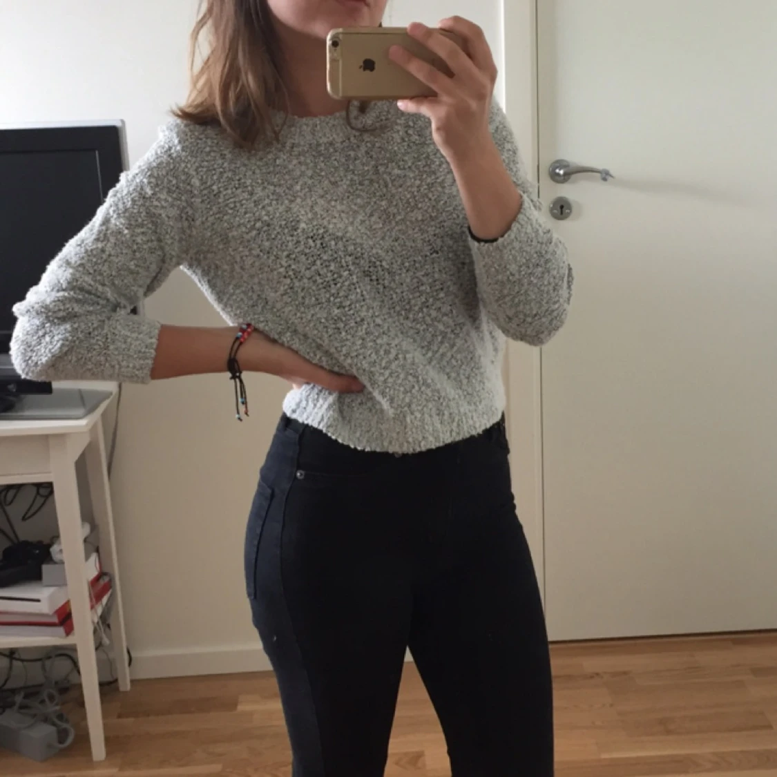En jätte skön stickad tröja i grå färg. En av mina favoriter som ska säljas nu, är i bra skick och håller en varm.