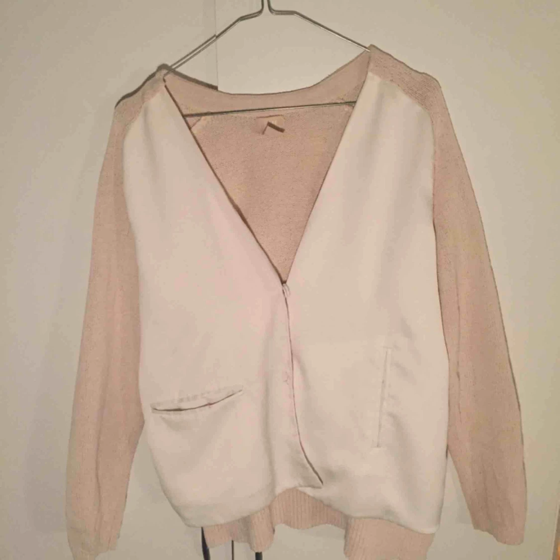 Kofta/kavaj i vitt och beige. Stickad baksida och ärmar men med vit kavaj framtill. Kan mötas upp i Nacka, centrala Stockholm eller Lund