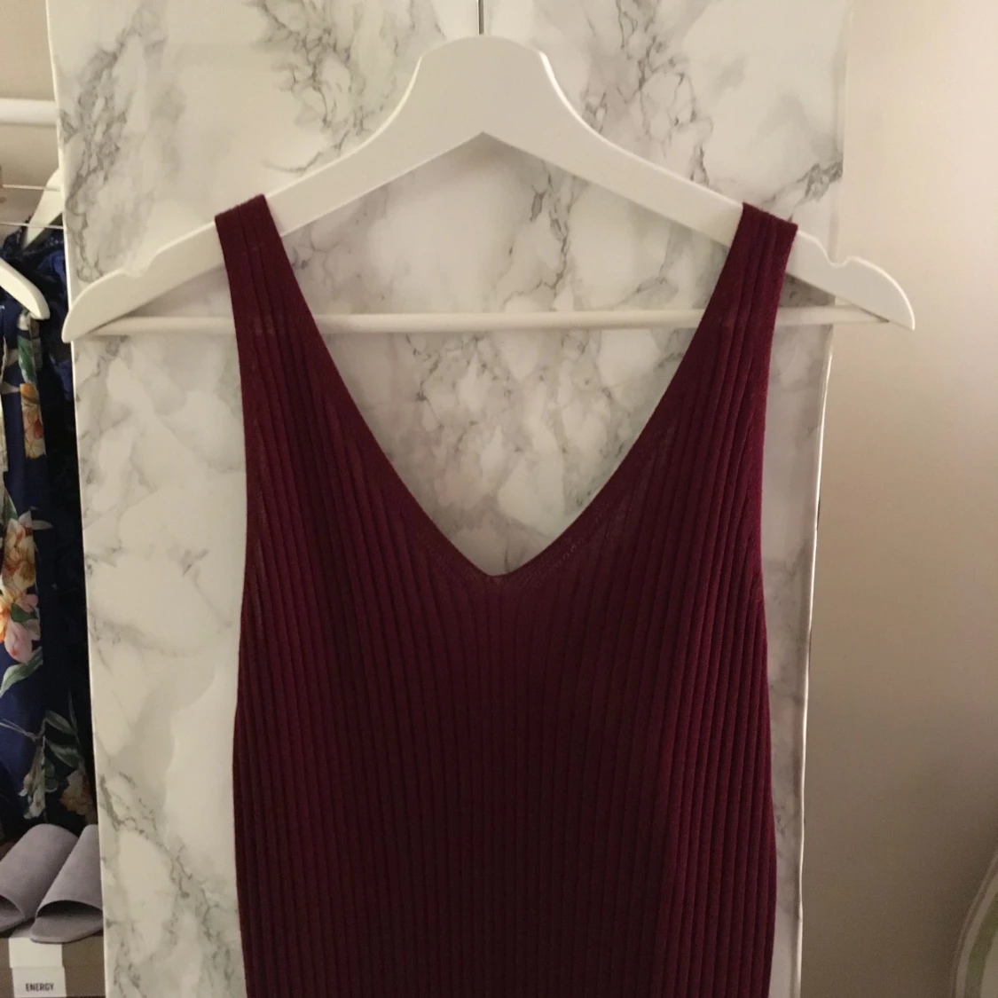 Skön, vinröd långklänning. Kan användas både till vintern och våren då den är stickad men sval. Aldrig använd.