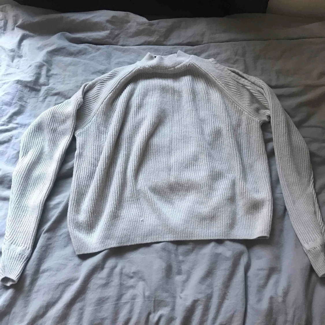 Grå stickad tröja från H&M, ish halterneck. Plus två styckna hål i varje arm