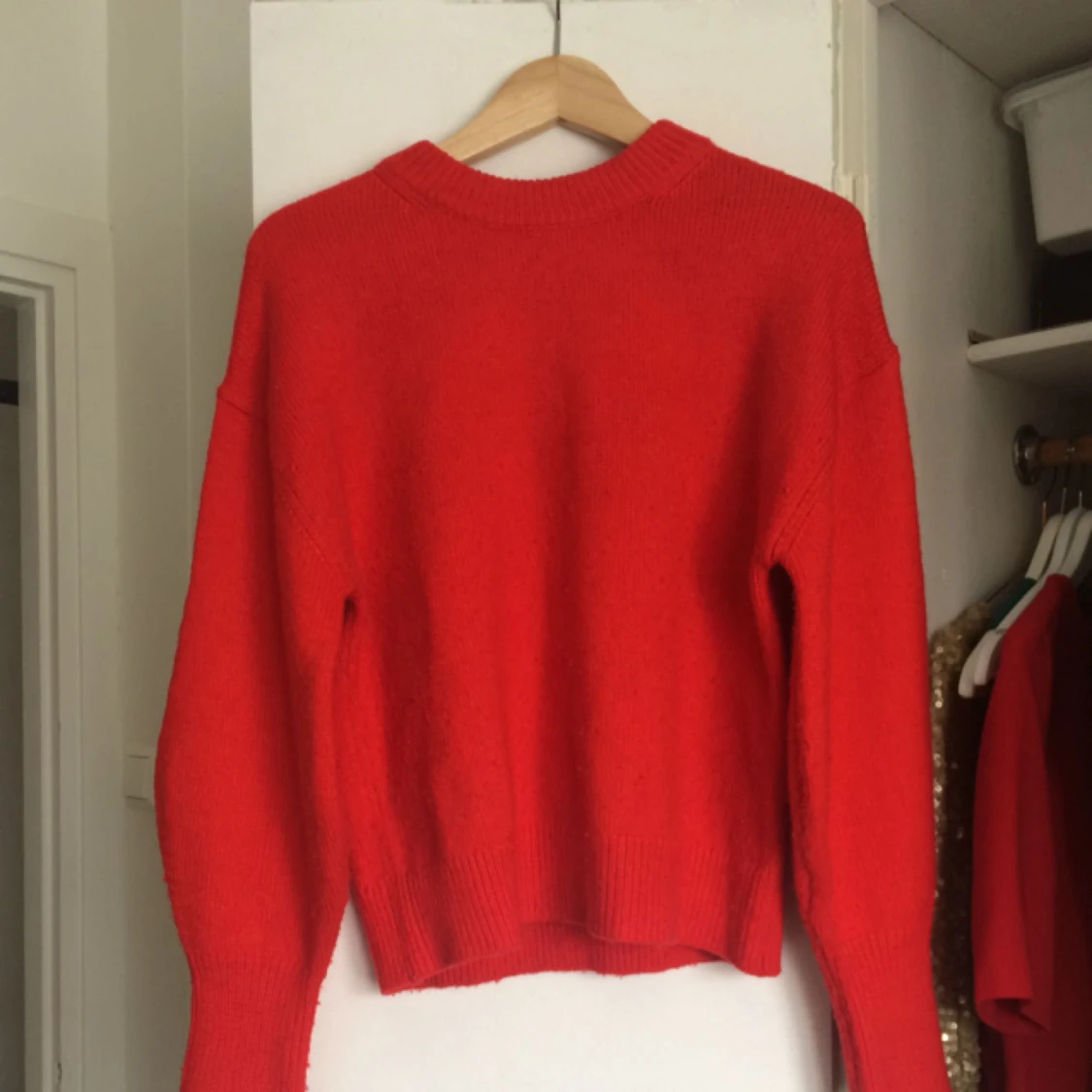 Tomatröd stickad tröja med ballongärm 🎈