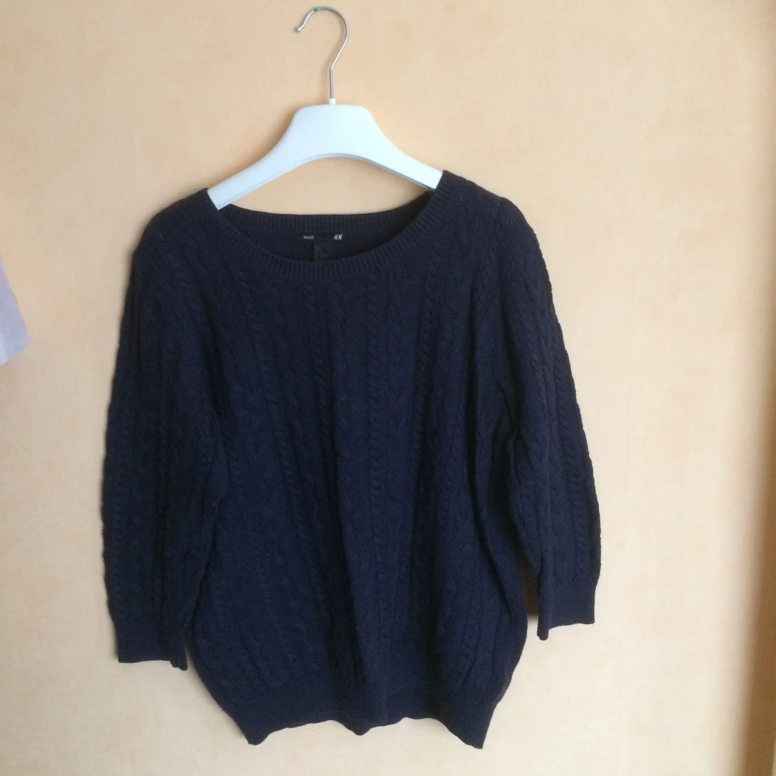 Säljer en jättefin kabelstickad tröja från H&M i storlek L i fint skick!. Kabelstickad framifrån, stickad bakifrån. Tar även emot betalning via Swish