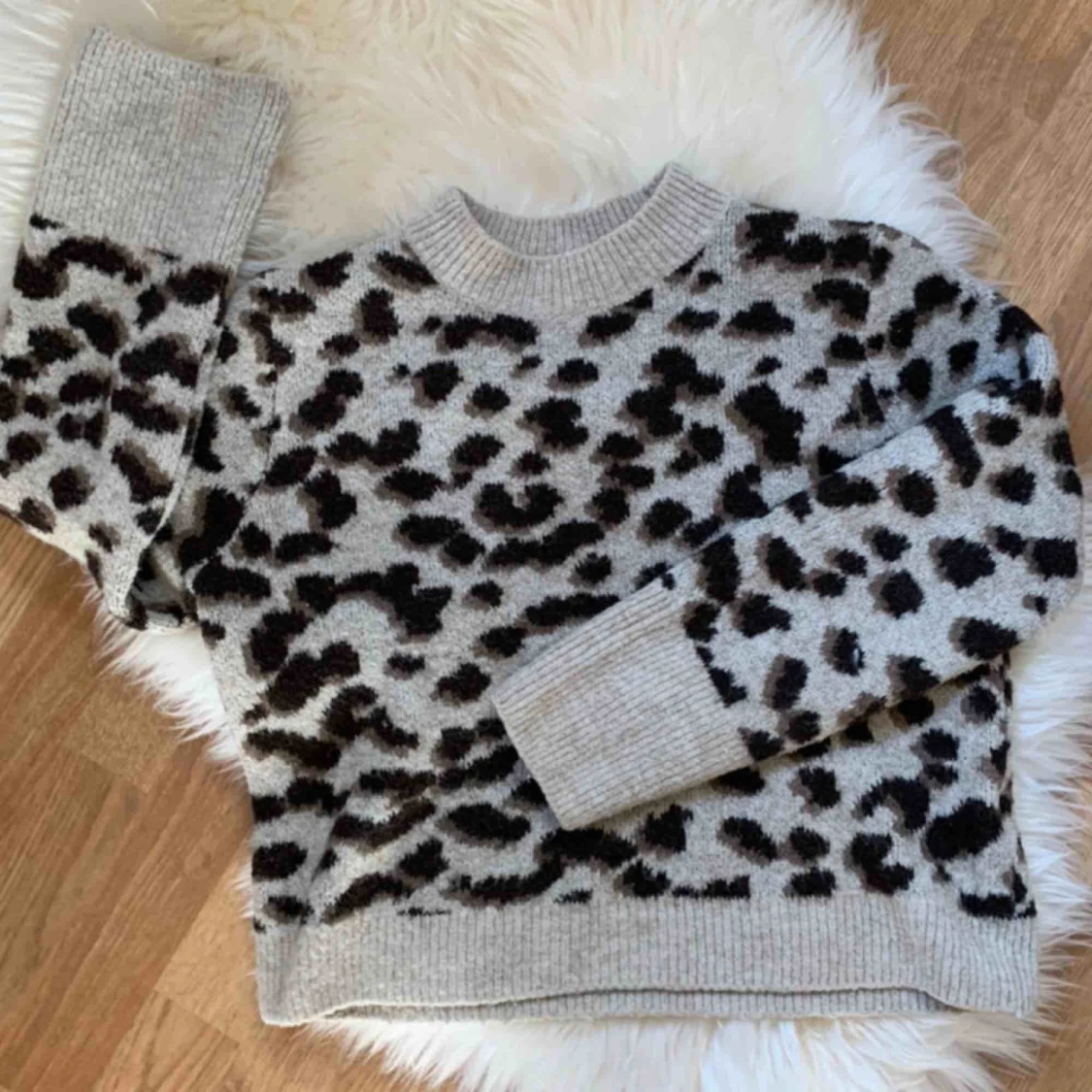 Säljer min älskade stickade tröja från hm med leopardmönster, storlek xs men passar mig med s. Varm och skön, sticks inte💕💕