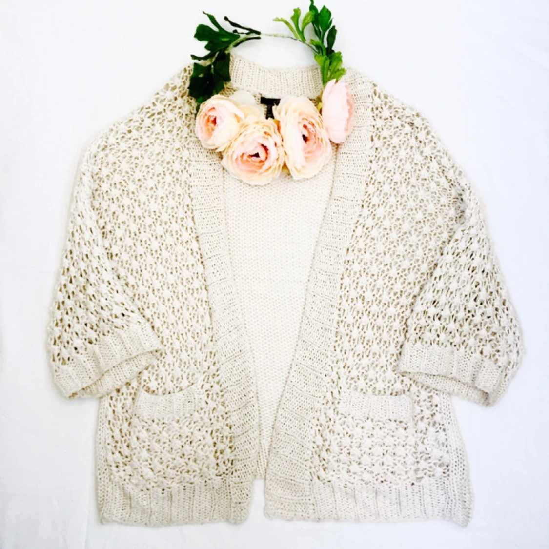 Virkad gräddvit tröja, använd, skön på varma sommarkvällar!