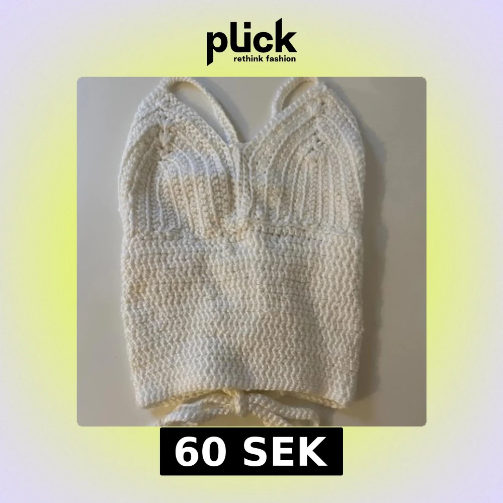 Superfin handvirkad topp i vit färg med croppad passform. Toppen har smala axelband och snygg snörning i ryggen. Stickad struktur och mjukt material gör den perfekt för varma dagar.