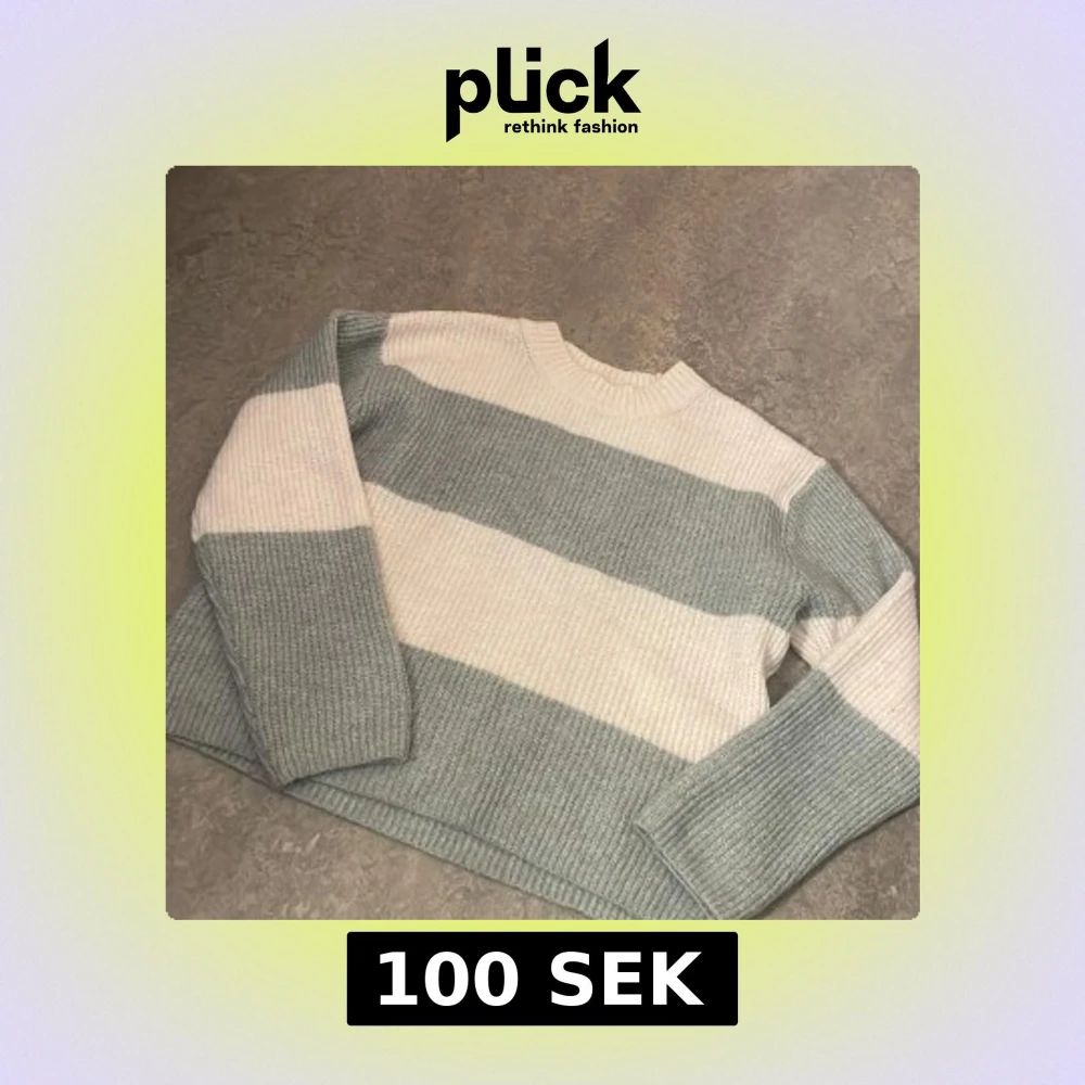 Mysig stickad tröja med breda ränder i grått och vitt. Tröjan har en avslappnad passform och långa ärmar, perfekt för kyligare dagar. Den ribbade strukturen ger en extra touch av stil. Säljer för ett billigt pris och knappt använt. Tröjan är i storlek 36 men den är ganska så stor