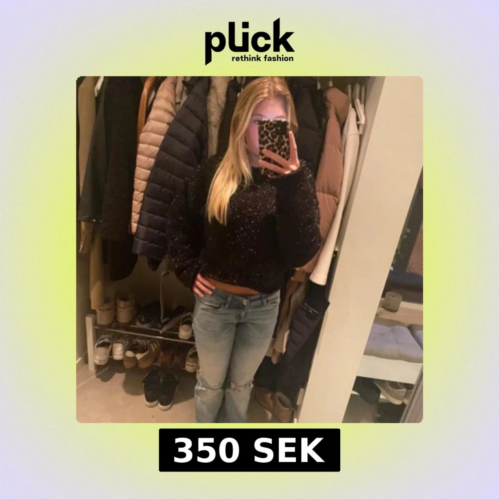 Svart stickad tröja med glittriga inslag. Tröjan har lång ärm och en loose fit. Perfekt för dig som vill ha en mysig men ändå snygg look med lite extra glitter.
