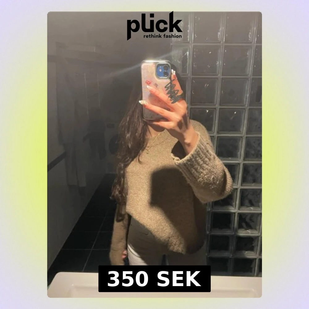 Säljer en beige stickad tröja med loose fit och långa ärmar. Tröjan har en enkel, klassisk design med breda muddar vid ärmsluten och en något croppad passform. Perfekt för dig som gillar chill och avslappnad stil.