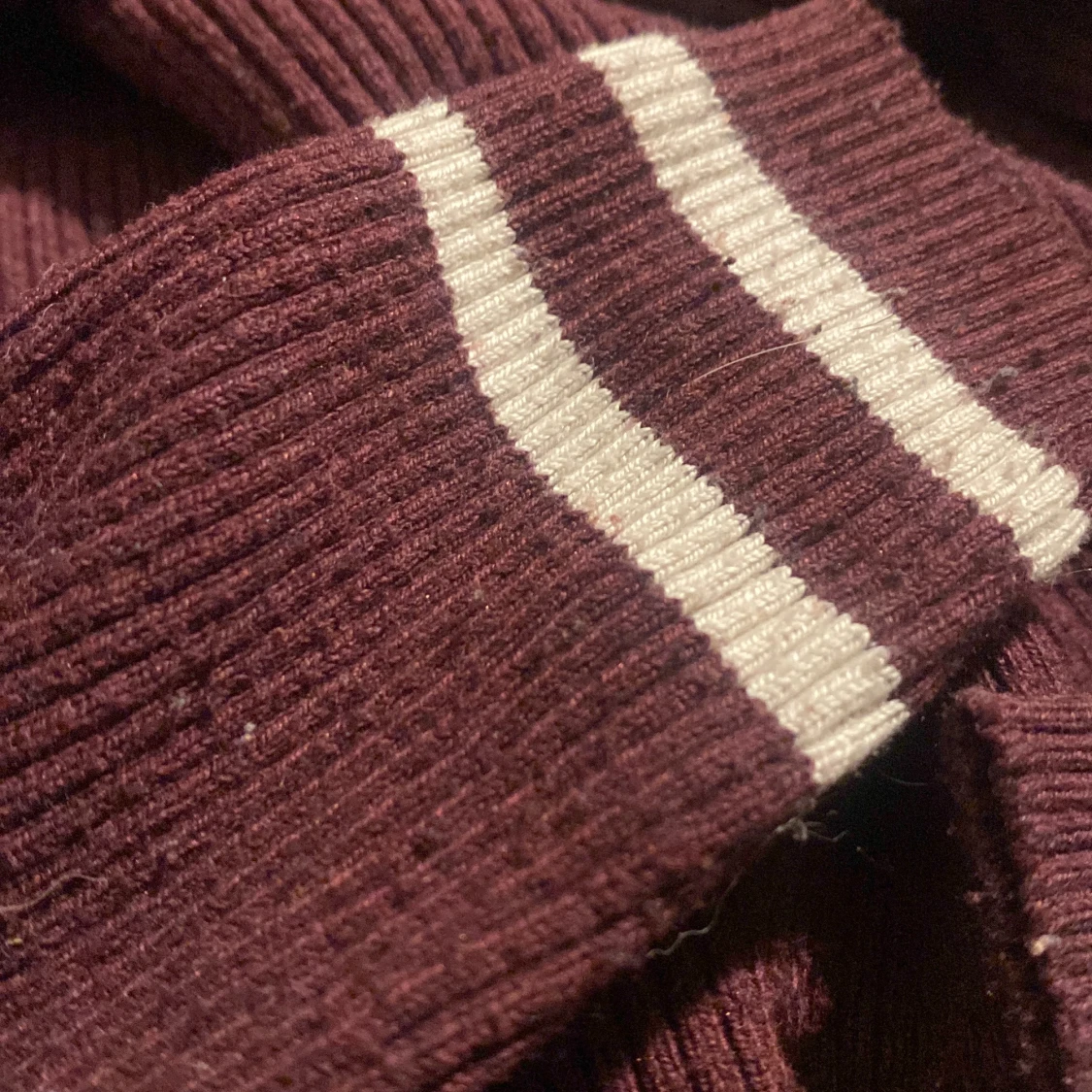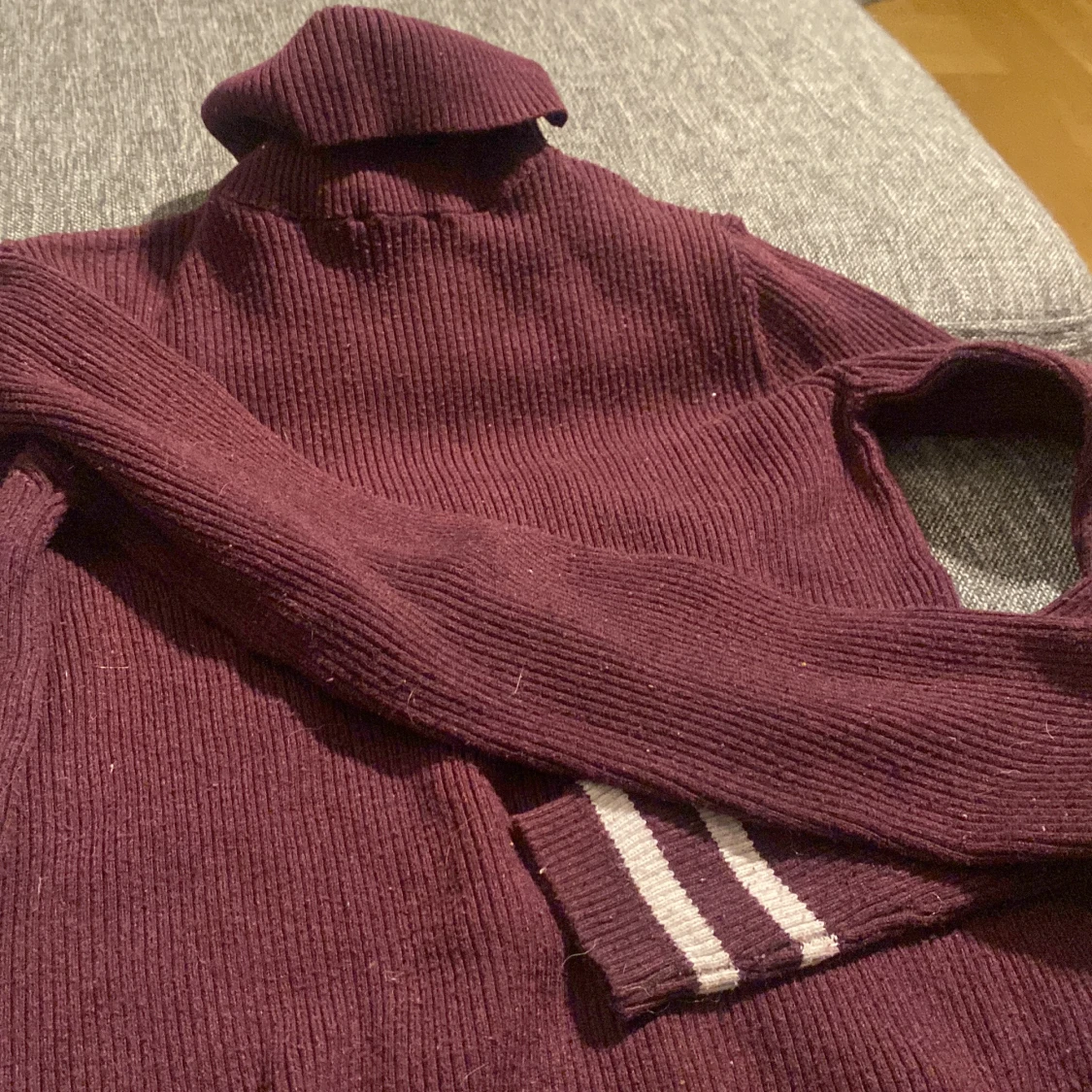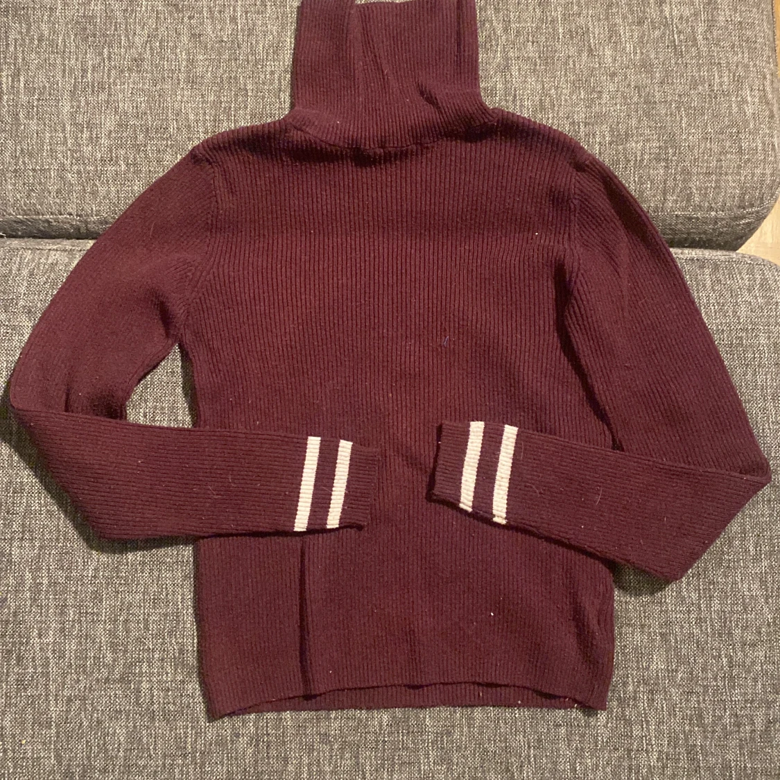 Vinröd polotröja med vita ränder på längst ner på armarna