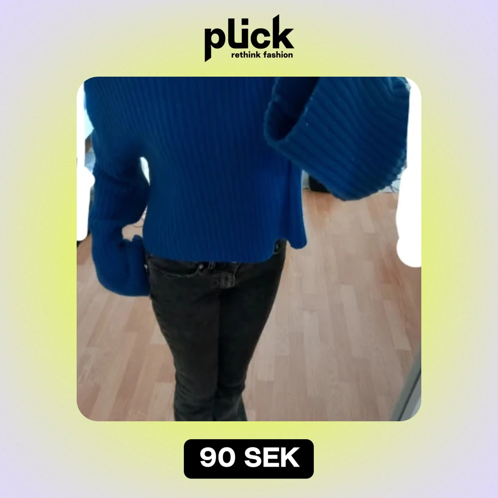 Säljer en superfin blå stickad tröja från H&M. Den är ribbad och är lite störe i passform med långa ärmar. Perfekt för höst och vinter när du vill hålla dig varm. Tröjan är i storlek XS och är använd några gånger! Liten tråd som sticker ut vid armen!