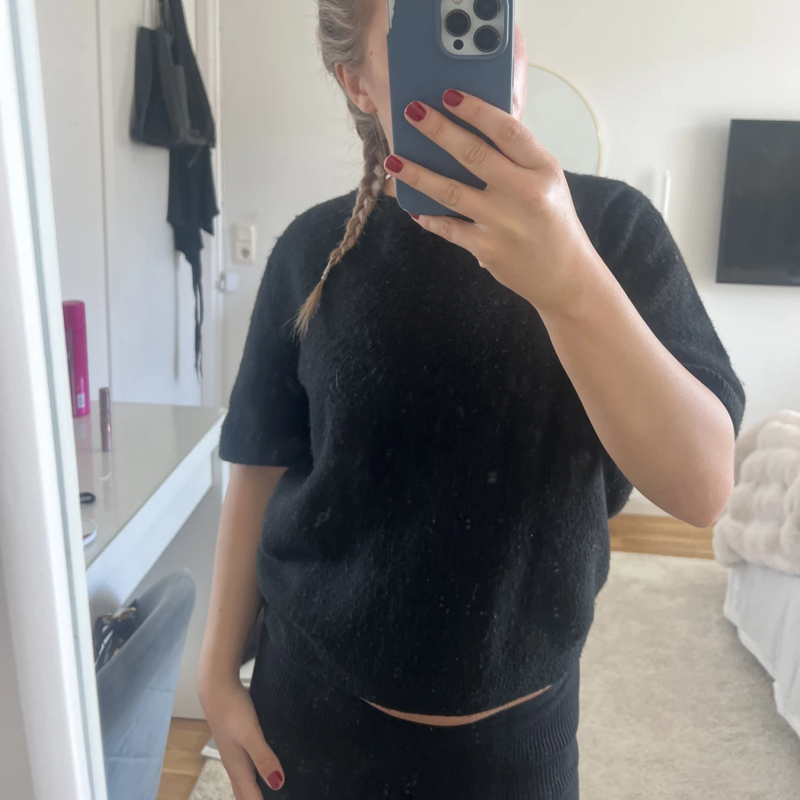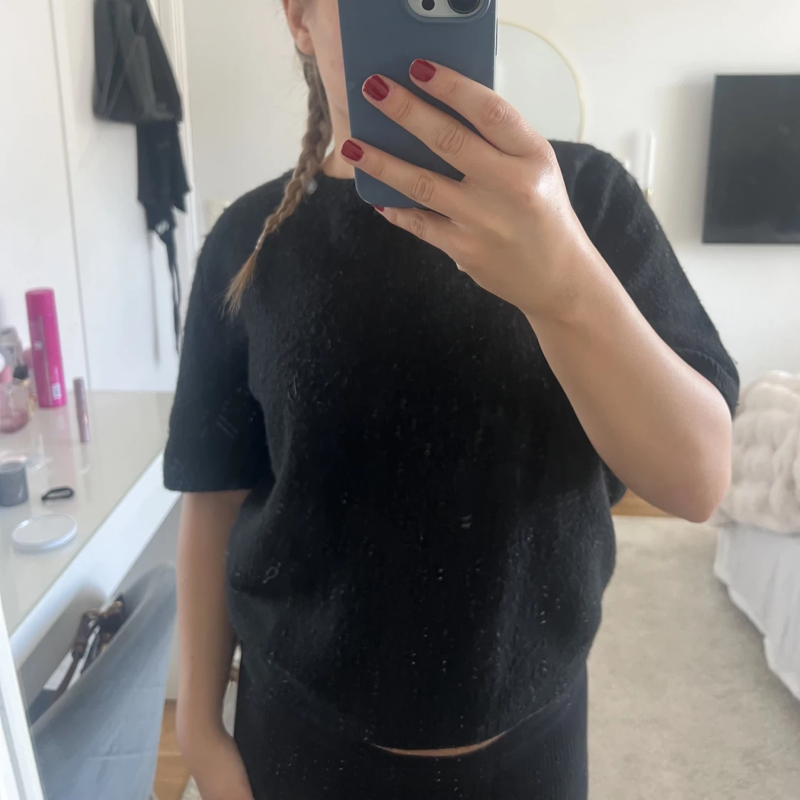 En svart fin stickad tröja med korta ärmar. Är i väldigt fint skick.