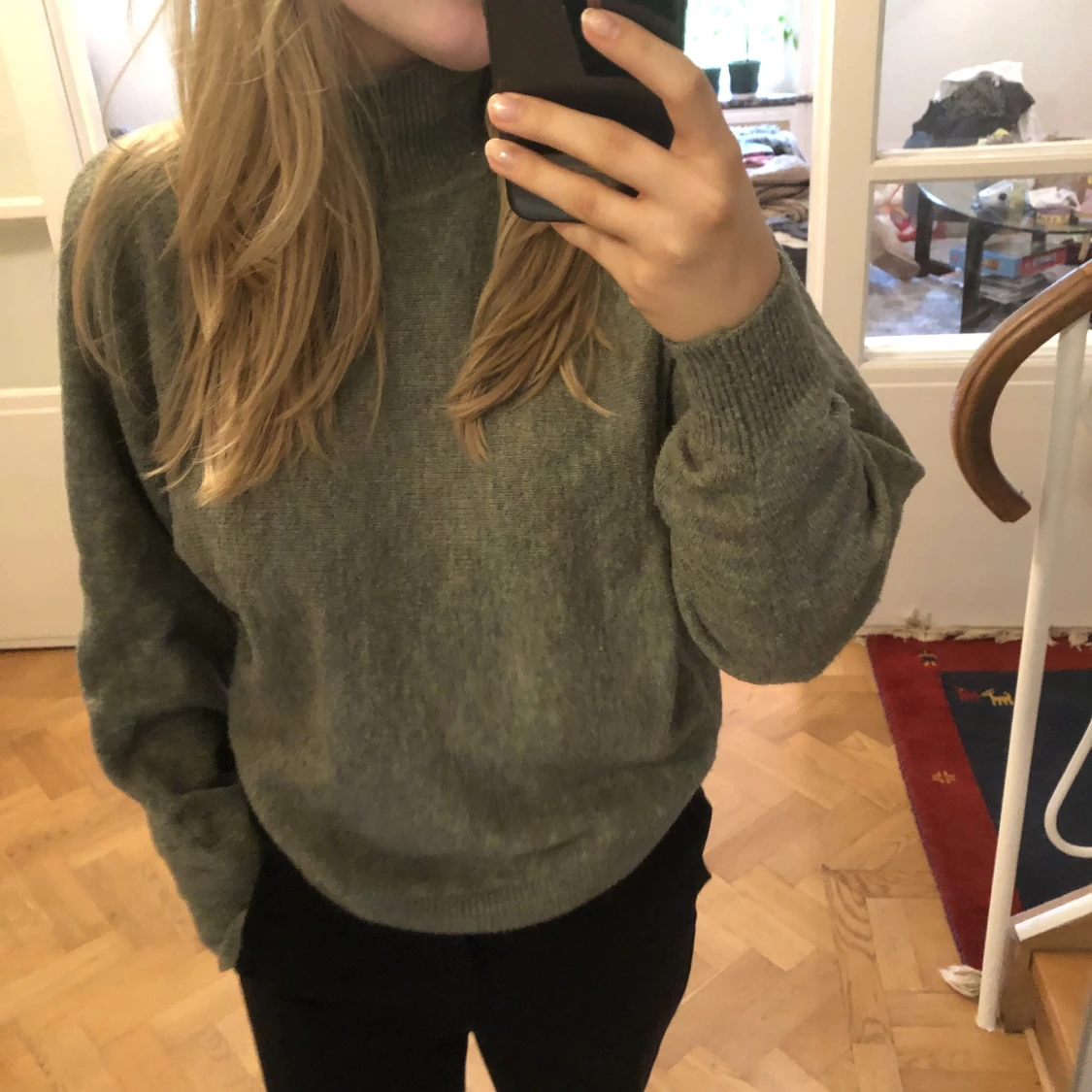 säljer denna snygga stickade tröjan! 🖤💚 finns också att köpa i grå på min profil! 🫶🏻 storlek XS men passar S! Supersöt och snygg! Första är lånad🖤 Skriv om intresserad! <3