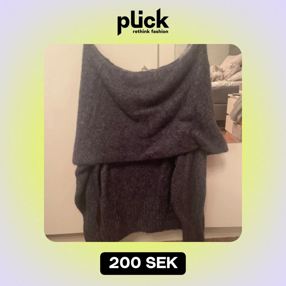 En aldrig använd blågrå stickad off shoulder tröja från hm i storlek m🙌💕 Har för mig nypriset var kring 300-400:)