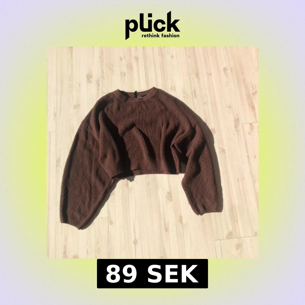 Säljer en brun ribbad croppad tröja med långa ärmar. Perfekt för en avslappnad stil och passar bra till jeans eller kjol. Tröjan har en enkel och stilren design.