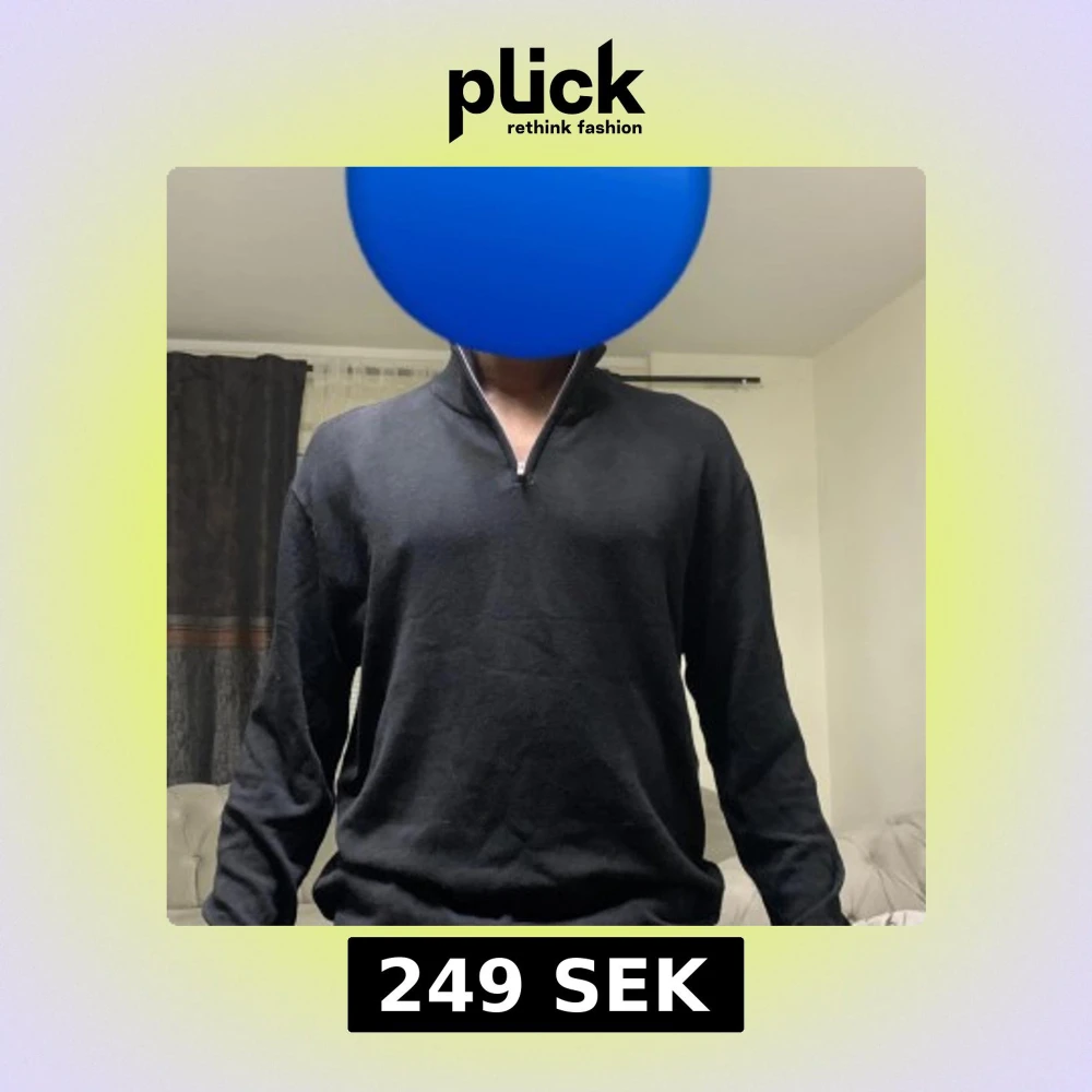 Svart stickad tröja med halv dragkedja i halsen. Tröjan har lång ärm, ribbade muddar och en clean, enkel look som passar till många outfits. Perfekt för dig som gillar stilren och bekväm design.