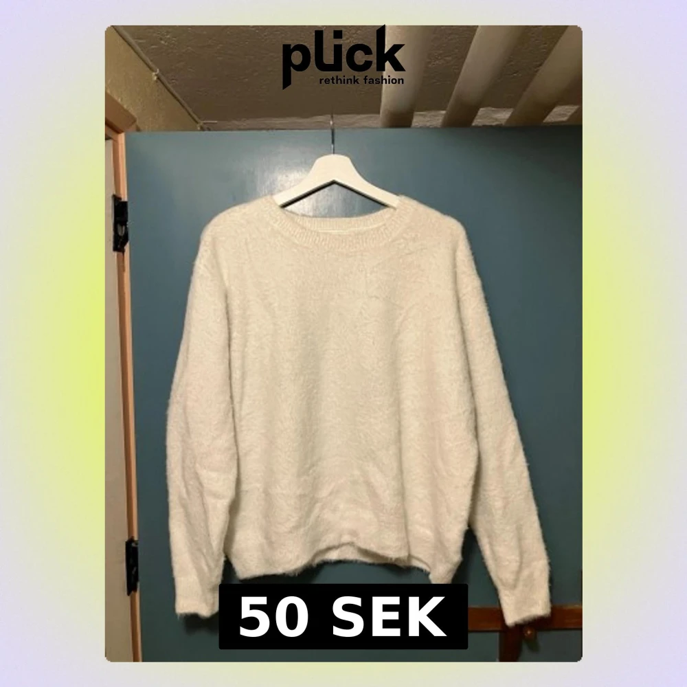 Mysig vit stickad tröja från H&M i storlek M. Tröjan har en fluffig och mjuk känsla, rund halsringning och långa ärmar. Perfekt för att hålla värmen under kyliga dagar och enkel att matcha med olika outfits.
