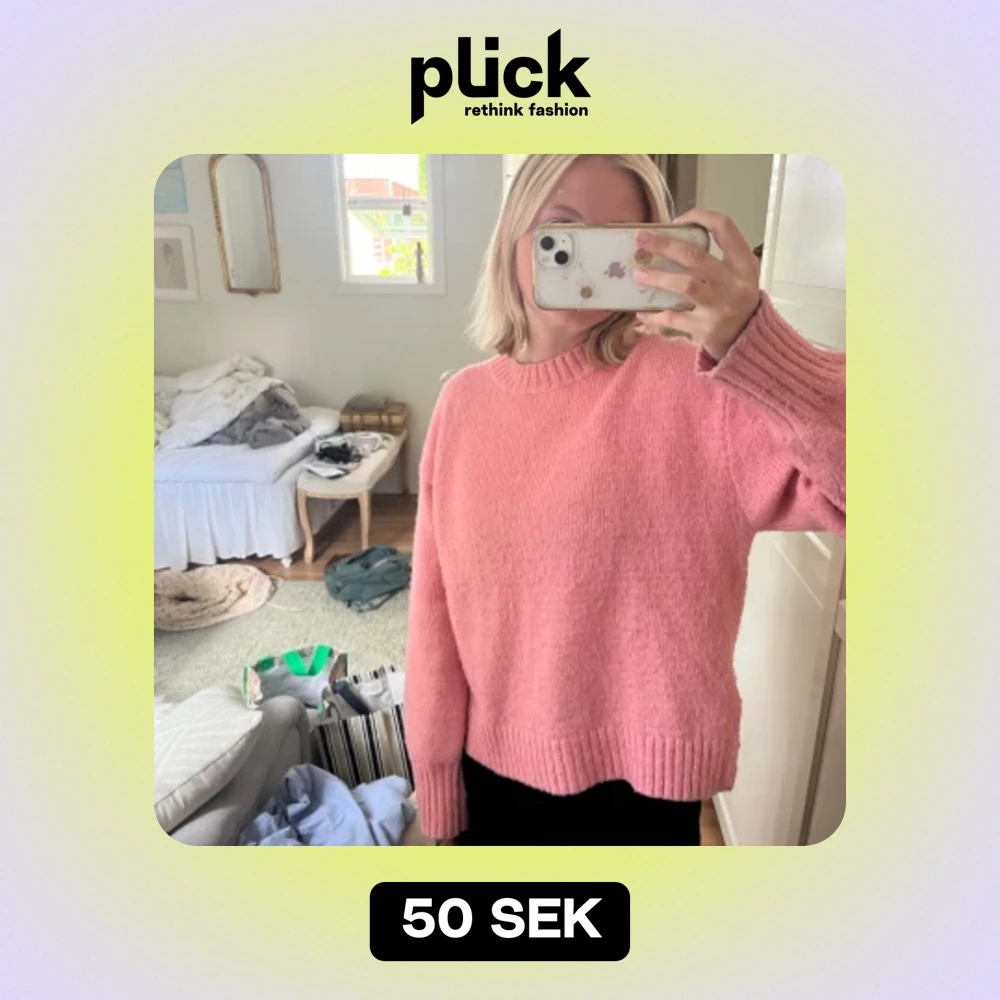 En stickad söt rosa tröja från hm. Lite använt skick då den är lite nopprig men fortfarande fin.