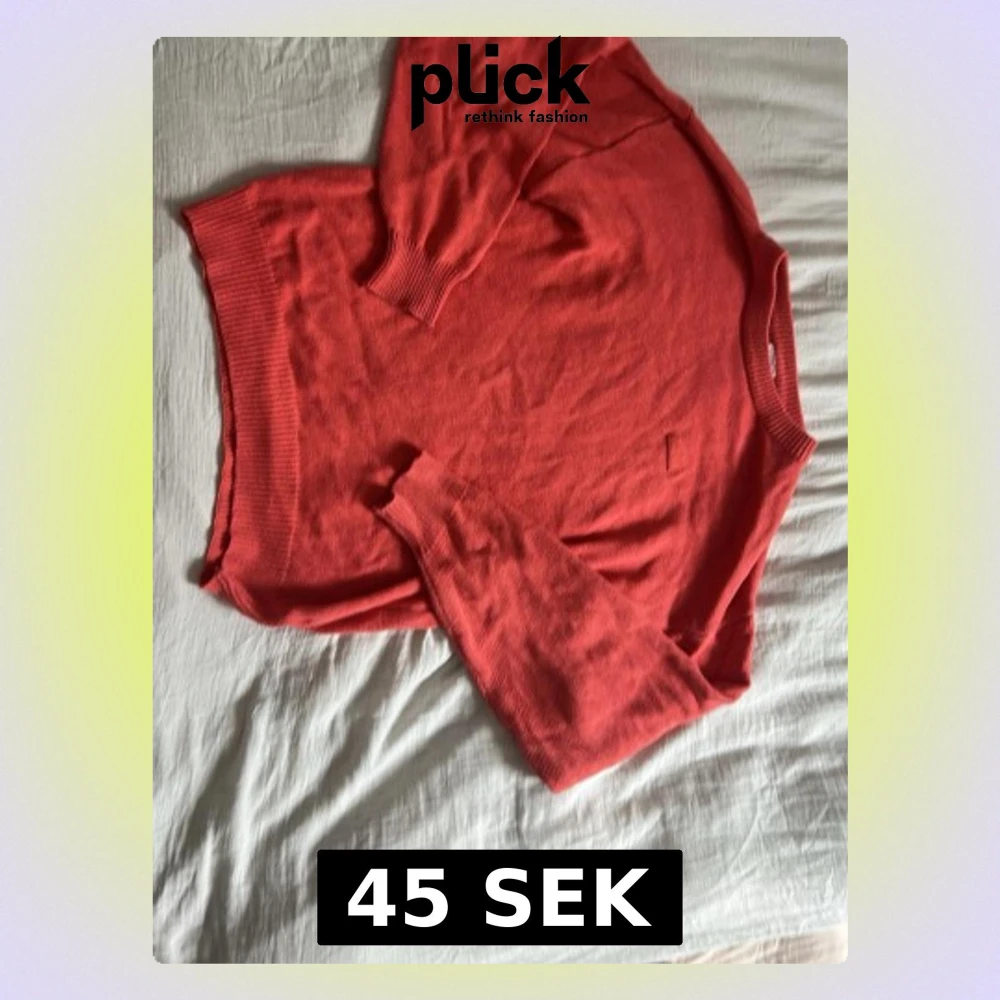 Säljer en korallfärgad stickad tröja från H&M i storlek M. Tröjan har rund halsringning, ribbade muddar vid ärmslut och nederkant samt lång ärm. Perfekt för dig som vill ha en enkel men snygg baströja till garderoben.