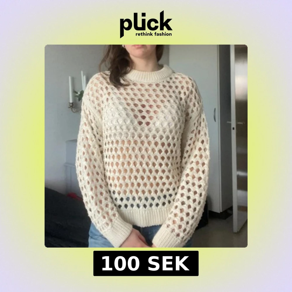 Säljer en vit stickad tröja med ett öppet hålmönster från h&m. Använd fåtal gånger!