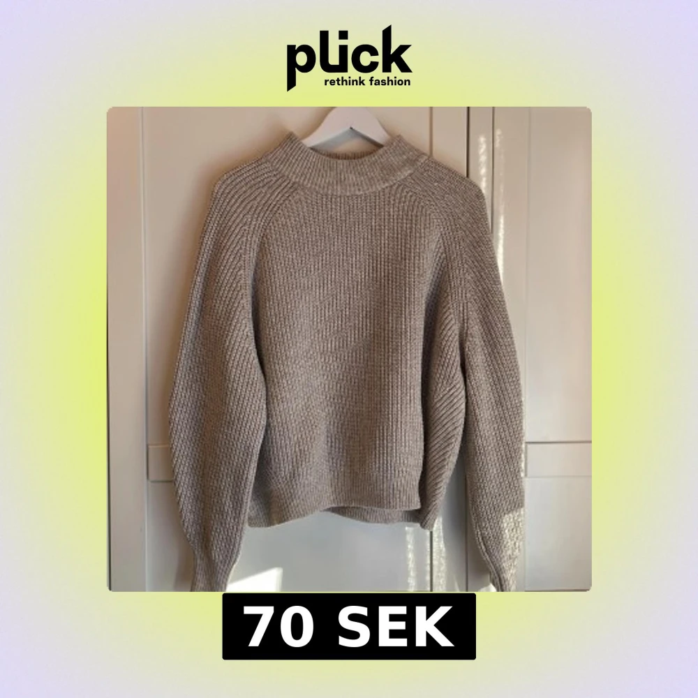 Säljer en beige stickad tröja från H&M i storlek M. Tröjan har en högre halsringning och är långärmad med en rak, något loose passform. Perfekt för lager-på-lager och enkel att matcha med olika outfits. Lite nopprig på vissa partier, se bild men ändrar inte helhetsintrycket. 😊