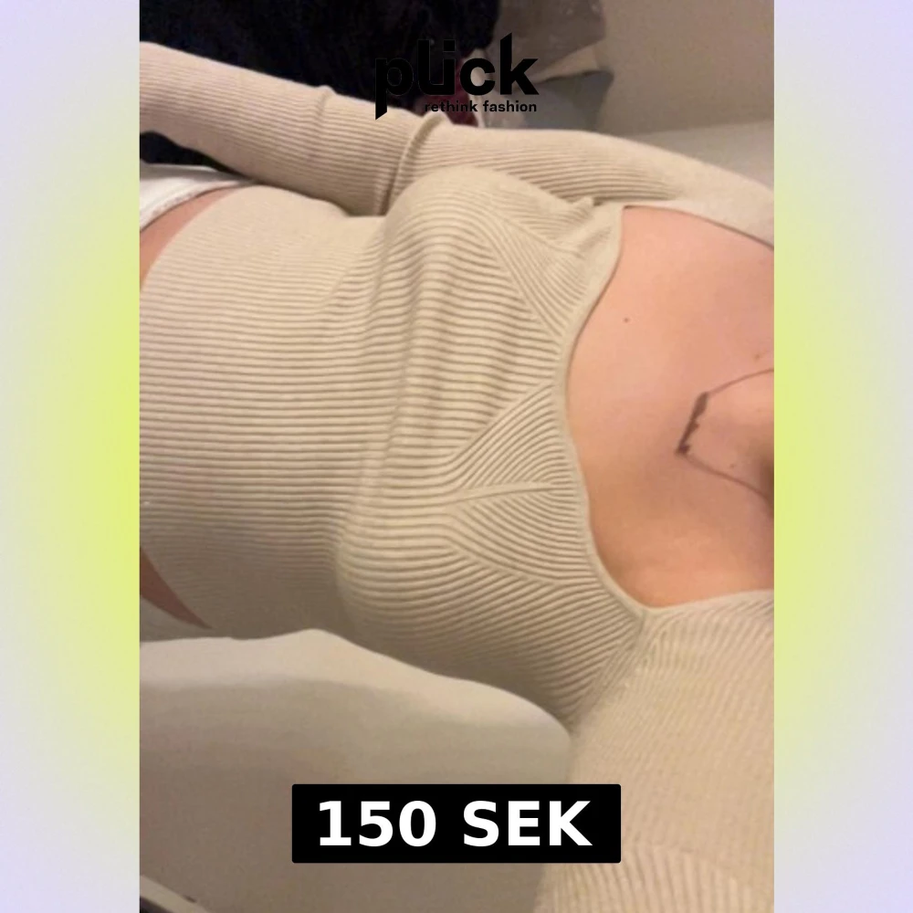 Säljer en beige ribbad croppad topp med lång ärm och snygg öppen rygg. Toppen har en tight passform och är tillverkad i ett stickat material som sitter skönt mot kroppen. Perfekt för dig som gillar trendiga och stilrena plagg.