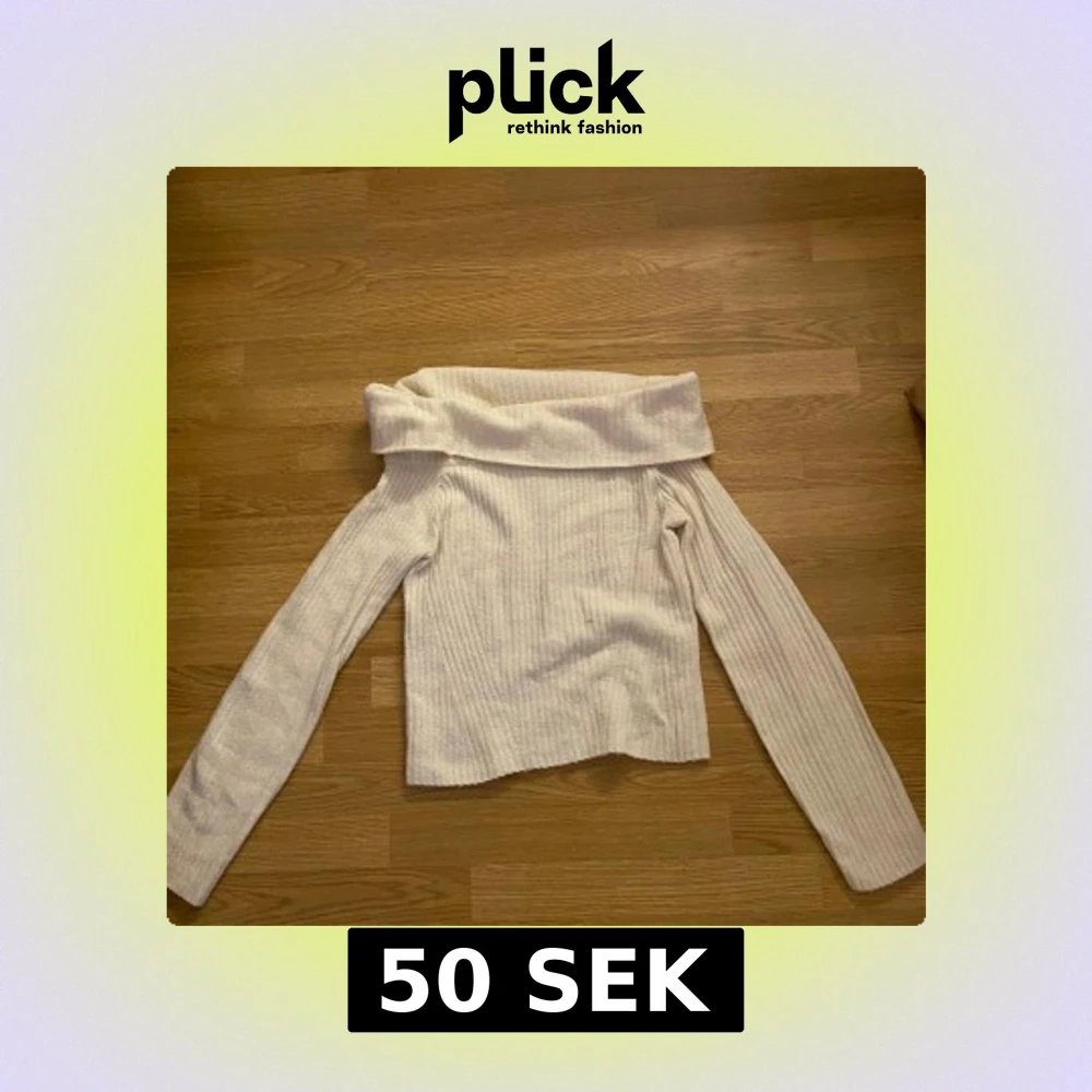 Superfin vit ribbad tröja från H&M med offshoulder-krage. Storlek M, pris kan diskuteras☺️