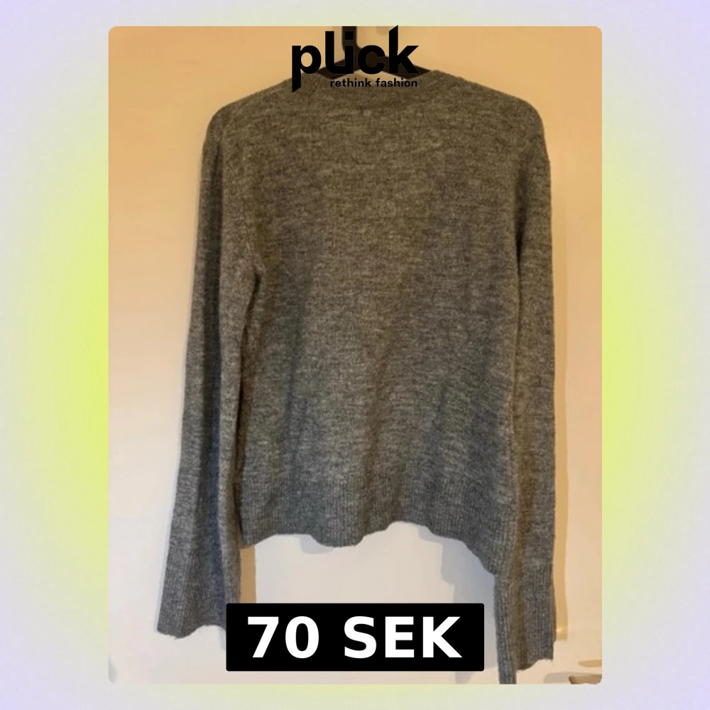 Mysig grå stickad tröja från H&M med rund halsringning och långa ärmar. Tröjan har ribbstickade muddar vid ärmslut och nederkant, perfekt för lager på lager och enkel att matcha till olika outfits.