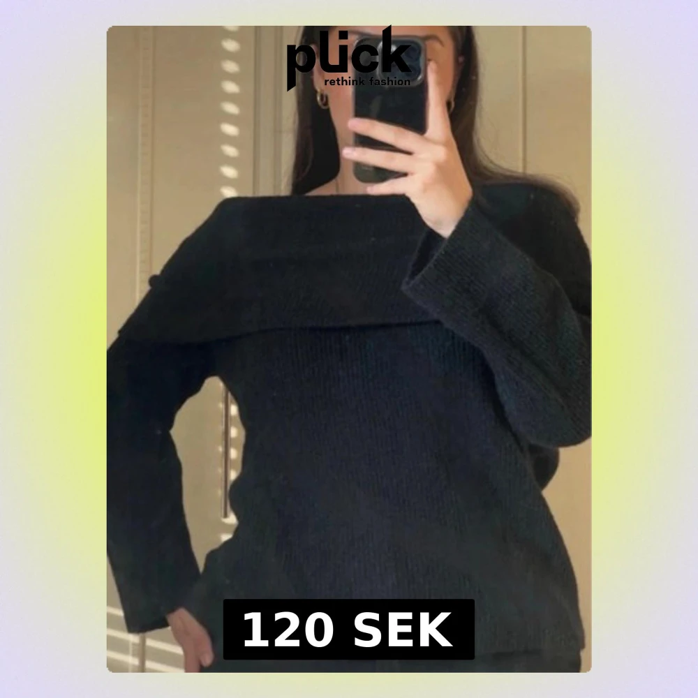 Säljer en svart stickad tröja med off shoulder-design och långa ärmar. Från H&M i stl M!