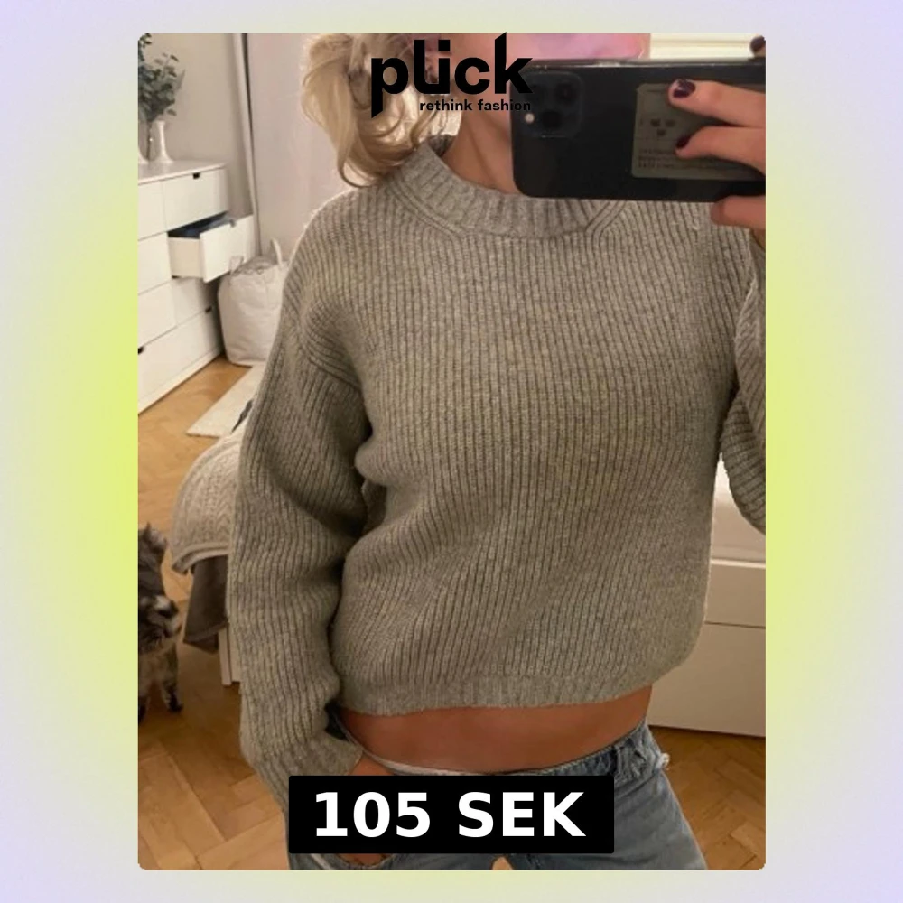 Grå ribbstickad tröja