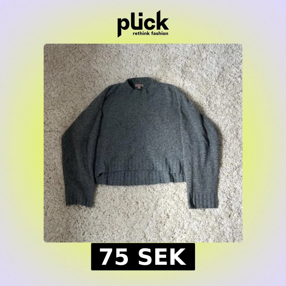 Mysig grå stickad tröja från H&M i storlek M. Tröjan har en enkel design med ribbade muddar vid ärmslut och nederkant samt en rak passform. Perfekt för lager-på-lager och chill dagar.