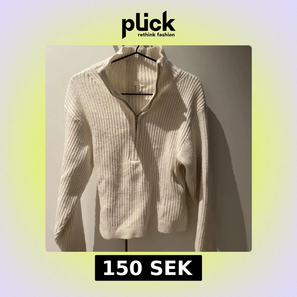 Säljer en vit ribbad stickad tröja från H&M med half zip.