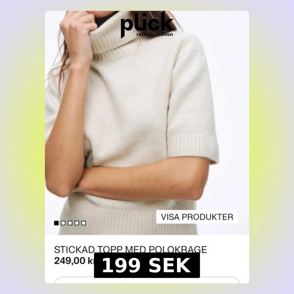Säljer en stickad topp med polokrage och korta ärmar. Tröjan är ribbstickad vid ärmslut och nederkant. Hittade ingen bild på i svart, därav den beiga bilden. Aldrig använd. Den säljs inte långre i svart!
