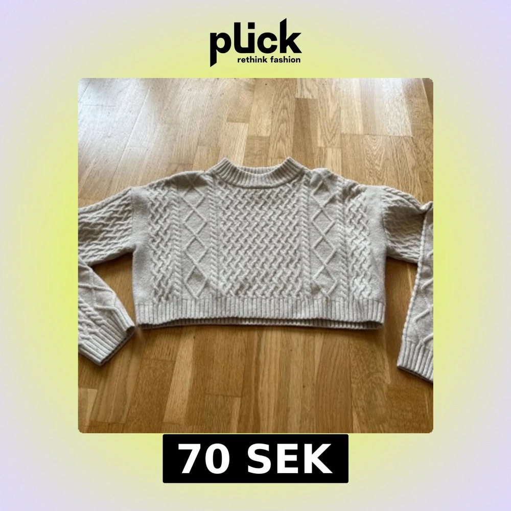 Superfin ljus croppad & stickad tröja från H&M med typ flätmönster. Säljer då den blivit för liten. Den är lite noppig men det syns inte så tydligt. Hör av dig om du har några frågor! 😊