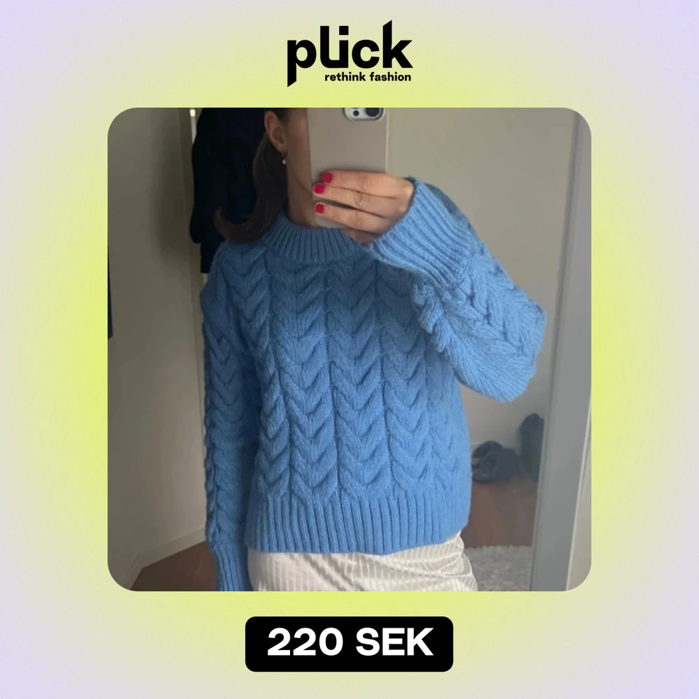 Säljer en superfin blå stickad tröja från H&M. Den har ett snyggt flätmönster och är perfekt för kyliga dagar. Tröjan är i bra skick och har långa ärmar med ribbade muddar. Perfekt för höst och vinter! 💙