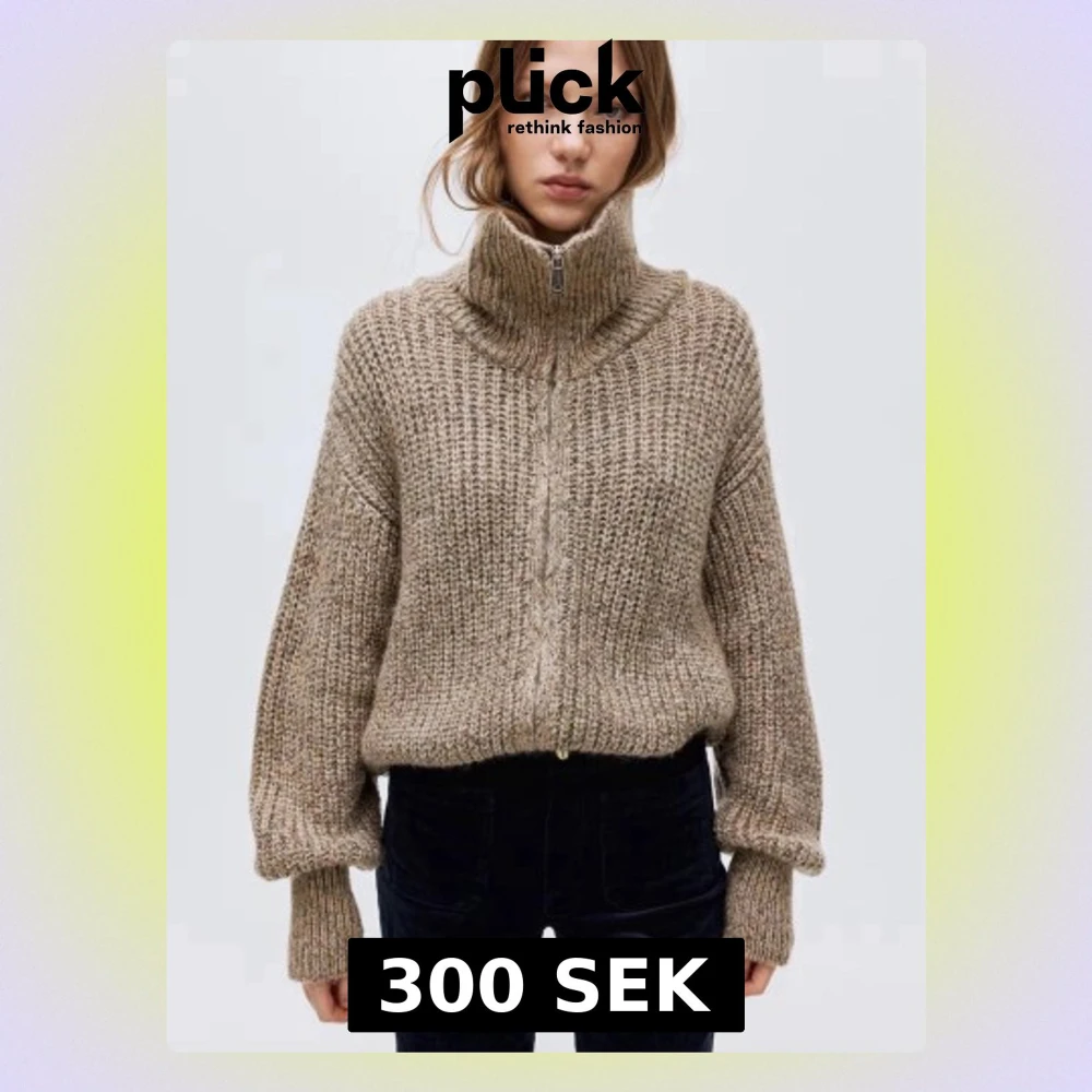 Mysig beige stickad tröja med grov struktur, hög polokrage och dragkedja framtill. Tröjan har avslappnad passform, långa ärmar och ribbade muddar. Perfekt för lager-på-lager och chill dagar. Med prislapp kvar