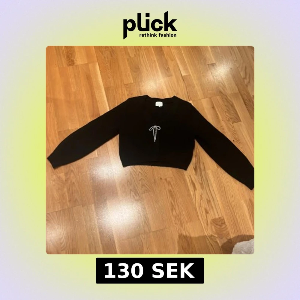 Svart stickad kofta från hm med en silvrig roset med diamanter. Använd få gånger.