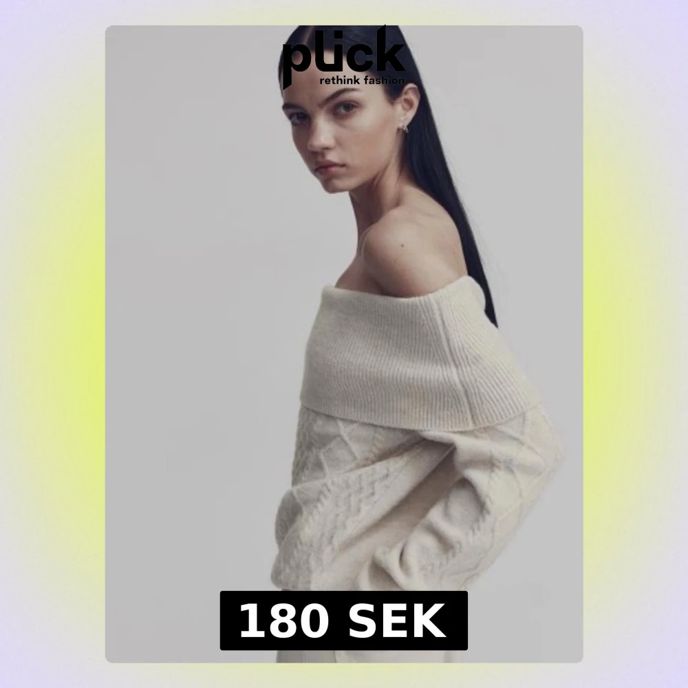 Trendig off shoulder stickad tröja i cremevitt med bred ribbad krage och snyggt kabelstickat mönster. Tröjan har långa ärmar och är tillverkad i ett mjukt material som ger en lyxig känsla. Perfekt för dig som gillar en stilren och modern look.