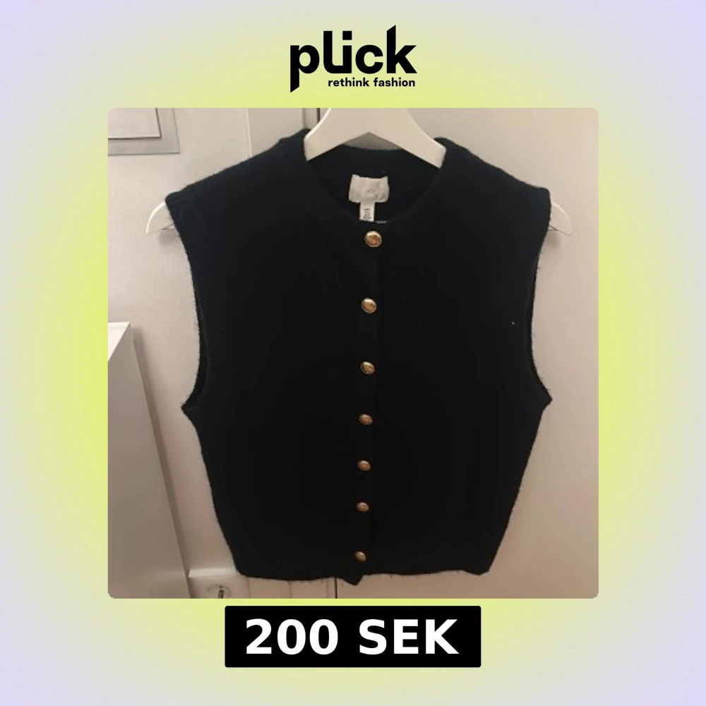 Svart stickad väst från H&M med rund hals och snygga guldfärgade knappar framtill.