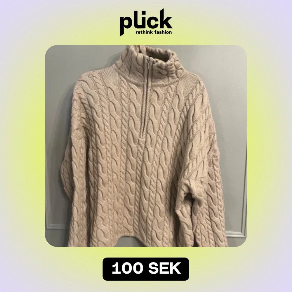 Oversized beige stickad tröja i ullblandning med dragkedja. Fint skick, nopprig på några ställen likt bild. Strl S.
